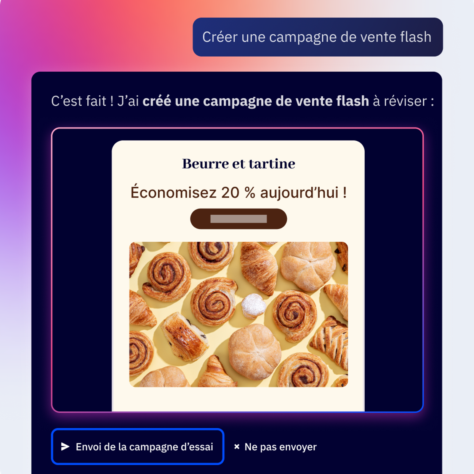 Élaborez des campagnes toujours actives qui incitent à l’action, avec des SMS personnalisés diffusés en quelques secondes.