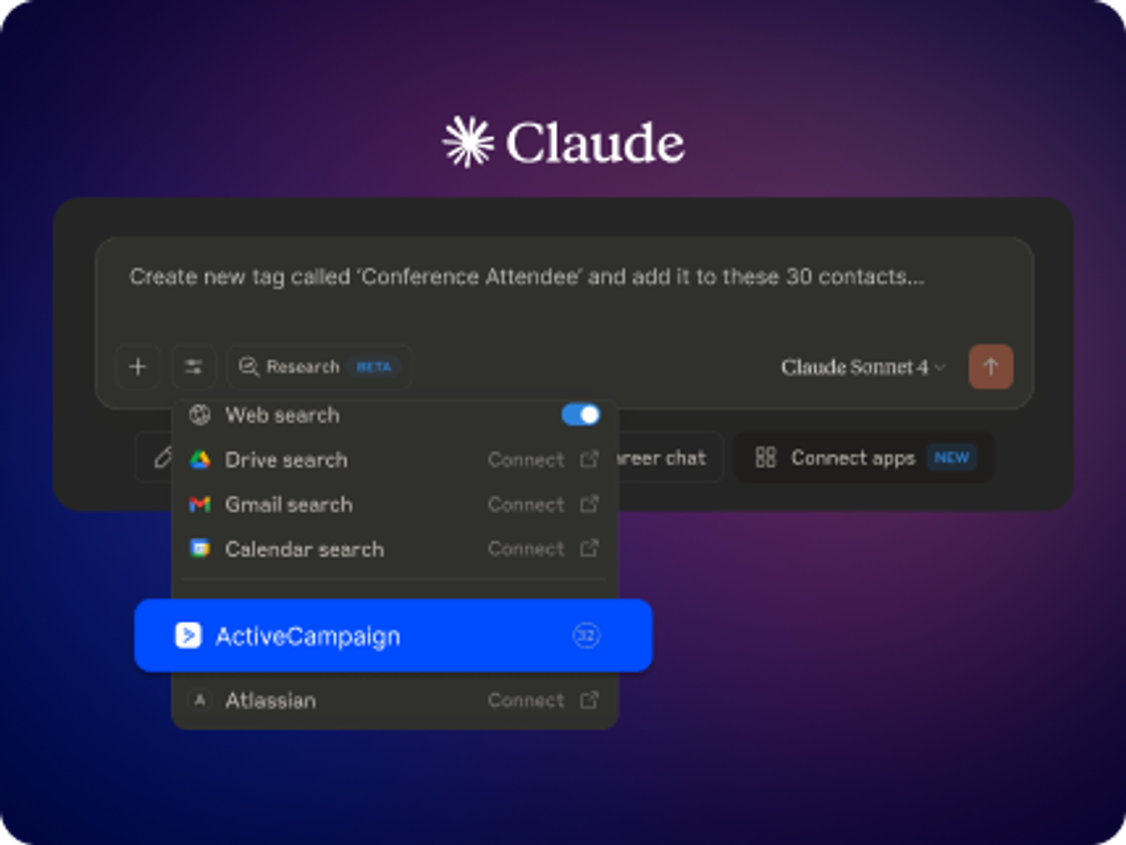 Effortlessly connect Claude to ActiveCampaign–no coding or developer skills required.