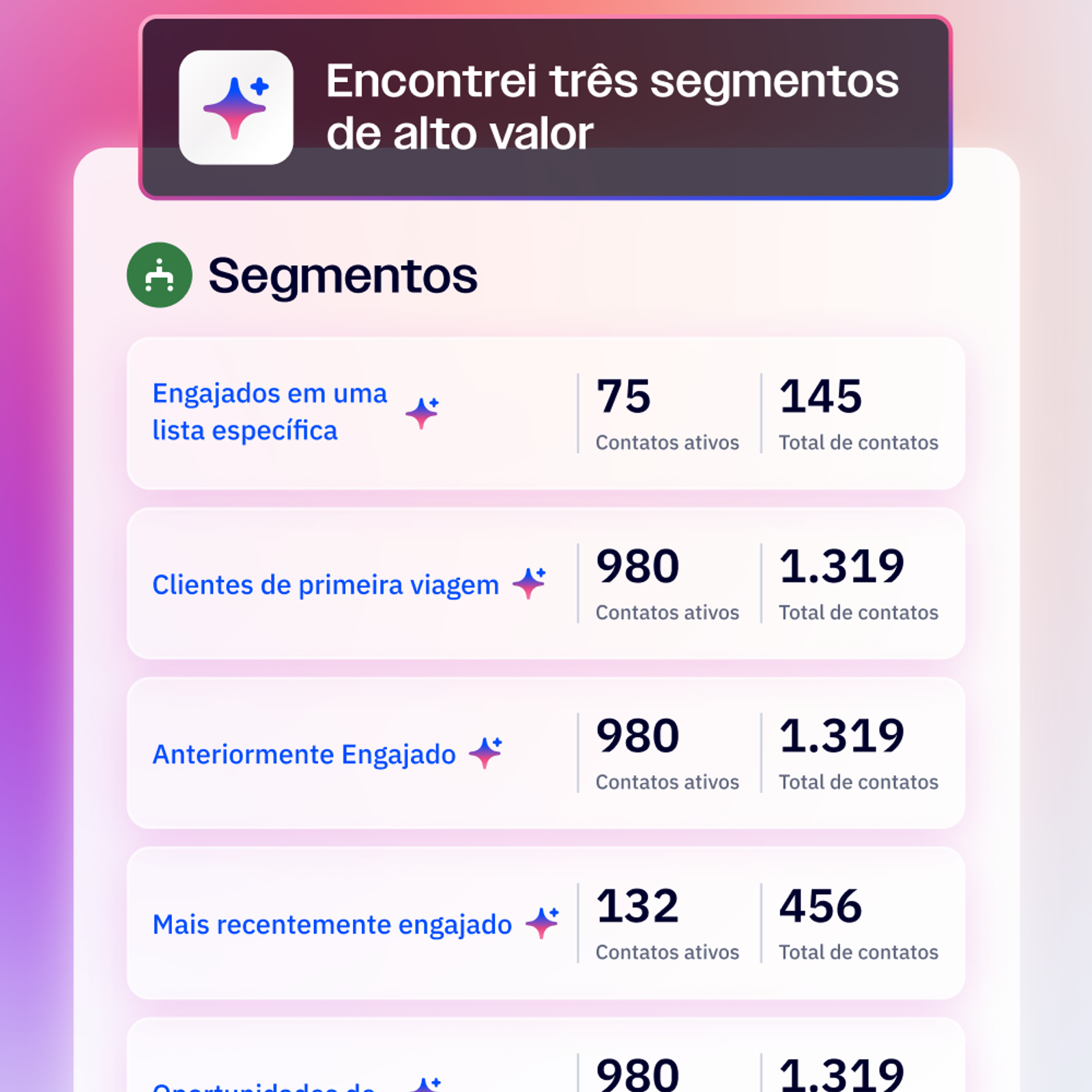A automação de marketing executa o que você cria. O marketing autônomo cria o que você precisa. Defina seus objetivos e veja o Active Intelligence criar estratégias de marketing inovadoras para você.