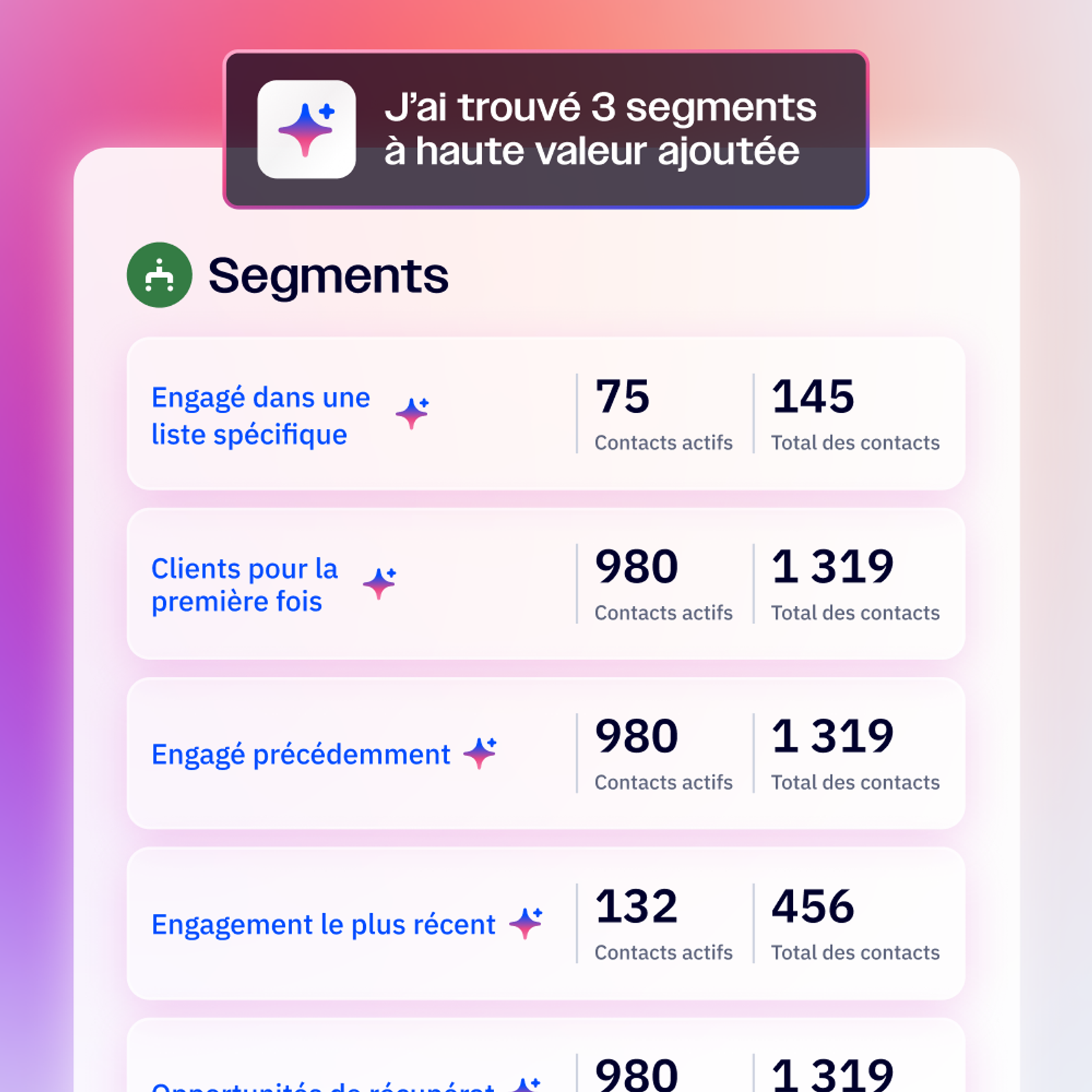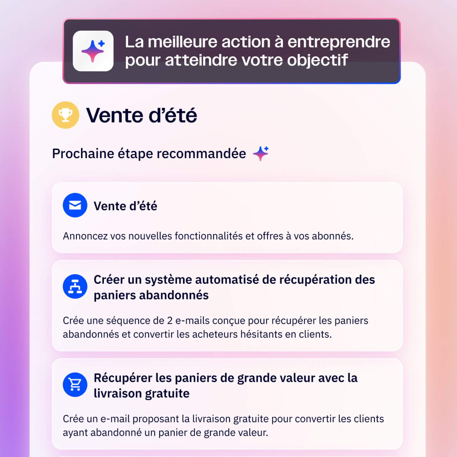 Le marketing automation exécute ce que vous construisez. Le marketing autonome construit ce dont vous avez besoin. Définissez vos objectifs et regardez Active Intelligence créer un marketing révolutionnaire pour vous.