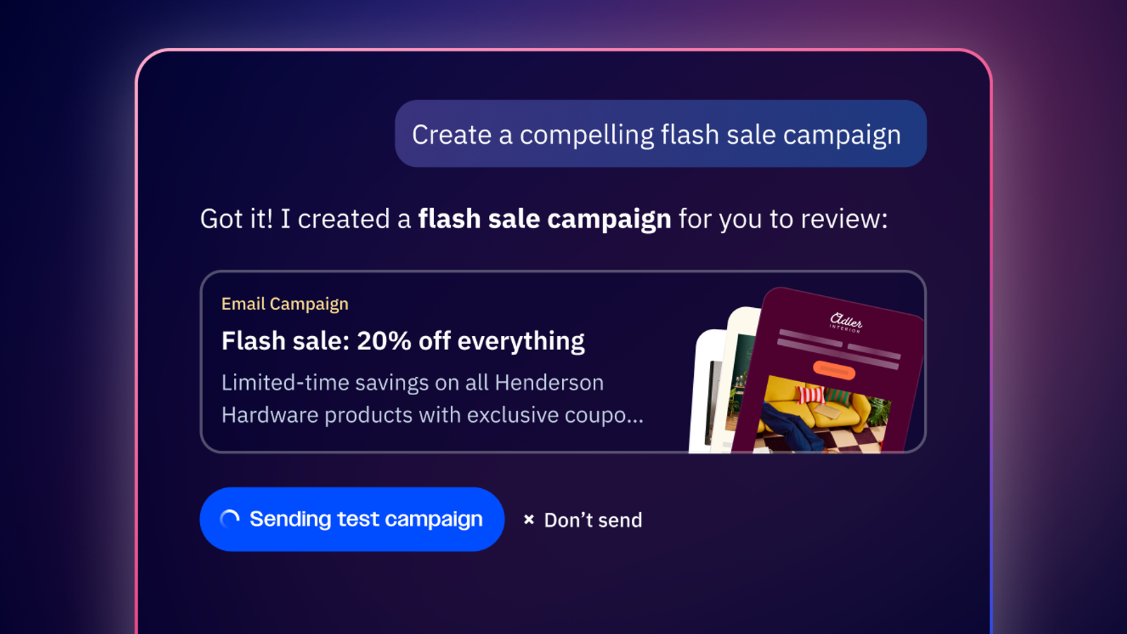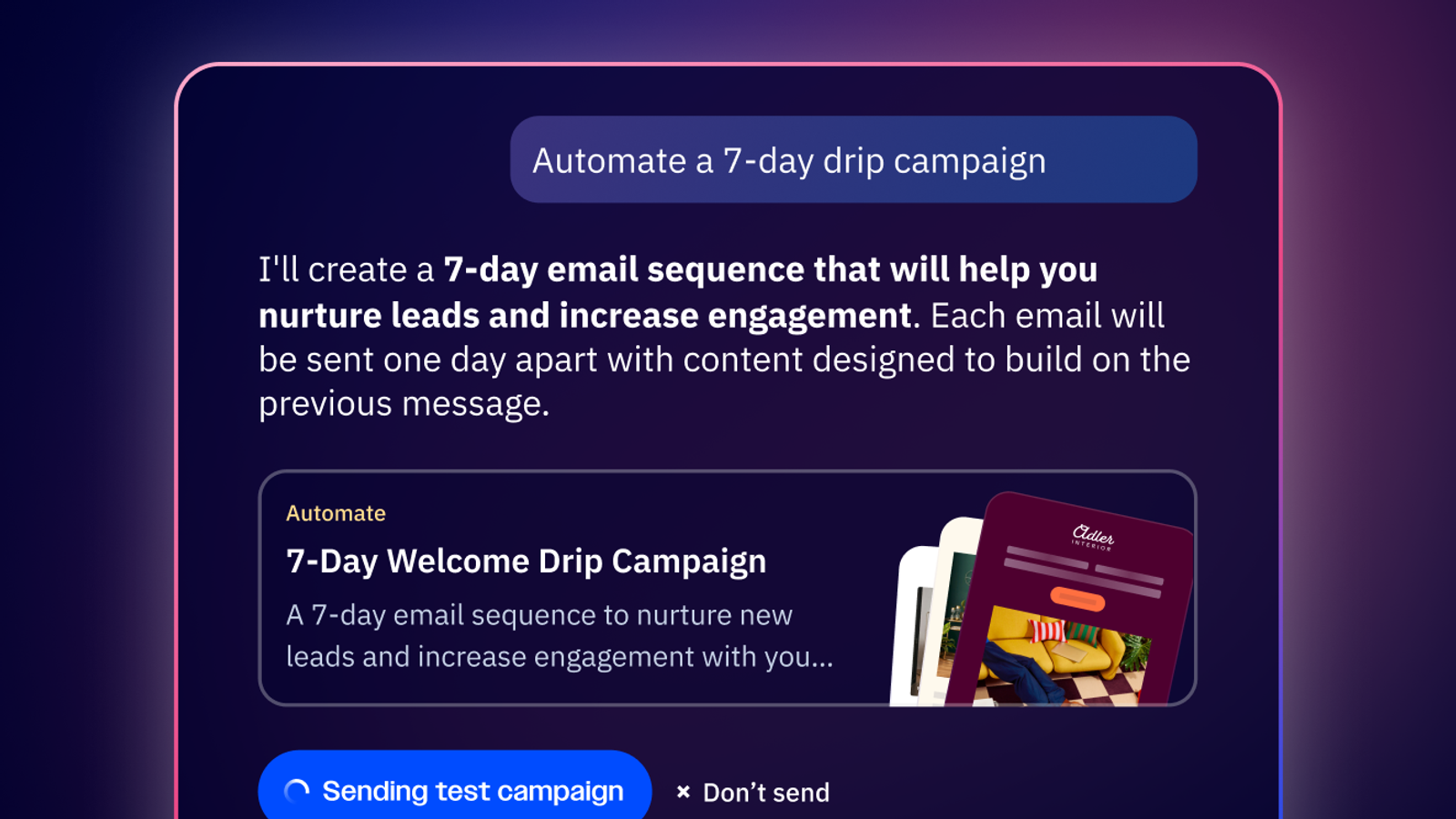 Instantly generate a full, on-brand campaign from a simple prompt.
